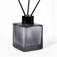 Botella difusora de láminas de vidrio esmerilado gris de lujo y único con logotipo personalizado 100ml 150ml cuadrada vacía transparente con palo y tapa negra